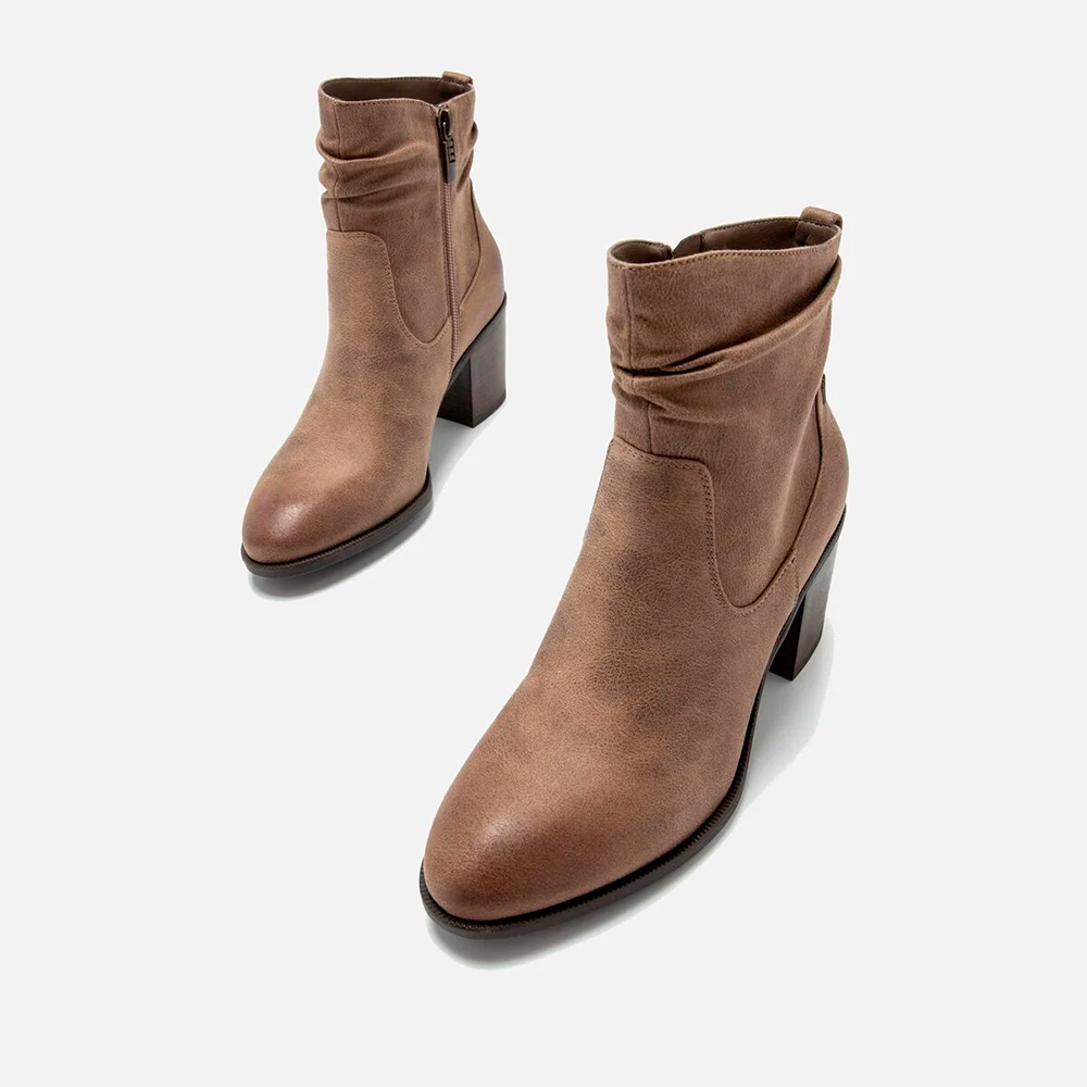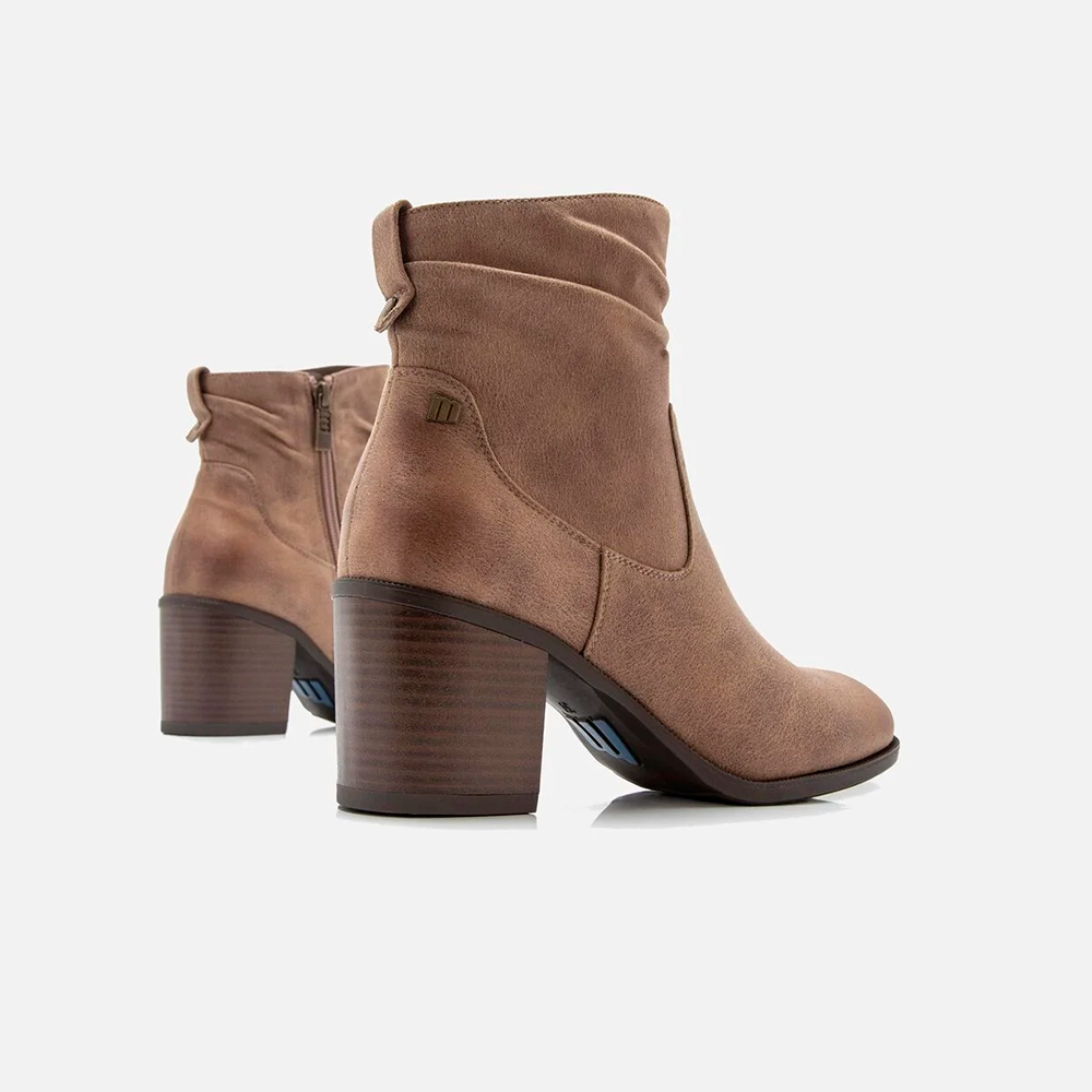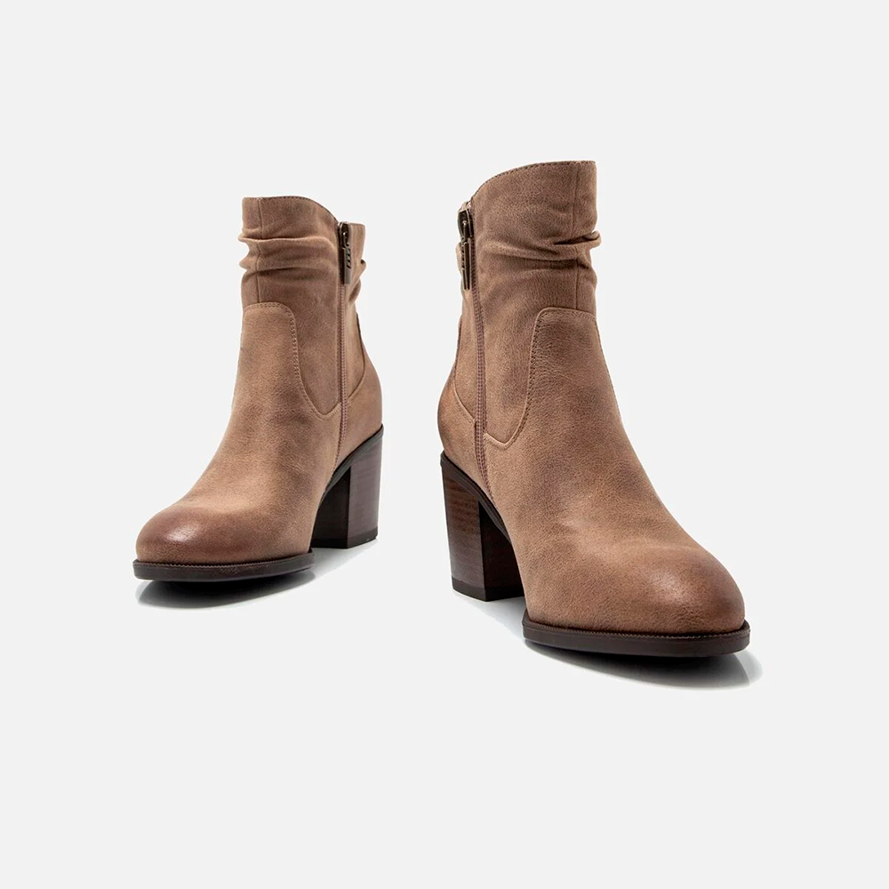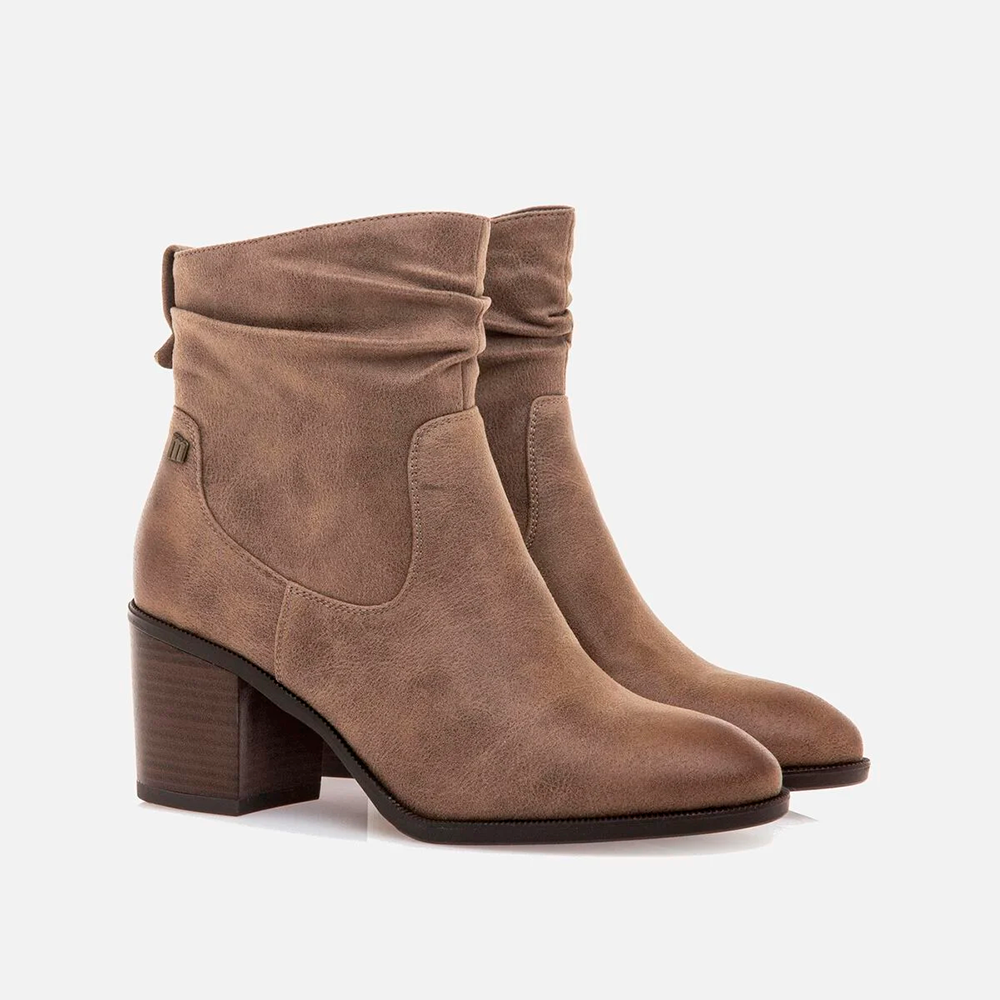 El Mustang 59501 C54868 Karma Eco en color marrón es un botín moderno y sostenible, diseñado para quienes buscan estilo y comodidad en su día a día. Su tacón ancho de 6,5 cm estiliza la figura sin renunciar a la estabilidad, y la cremallera lateral permite calzarlo fácilmente.