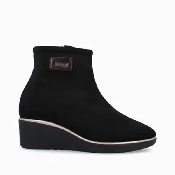 Botines confort Doctor Cutillas 64816 en color negro. Licra impermeable, cremallera lateral y cuña ligera para caminar cómoda y con estilo.