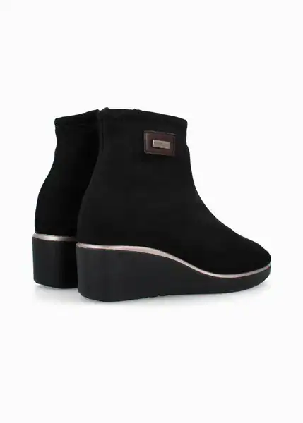 La cremallera lateral permite calzarlo y descalzarlo con total facilidad, sin esfuerzo. Su cuña ligera aporta altura con estabilidad, favoreciendo una pisada cómoda durante horas.