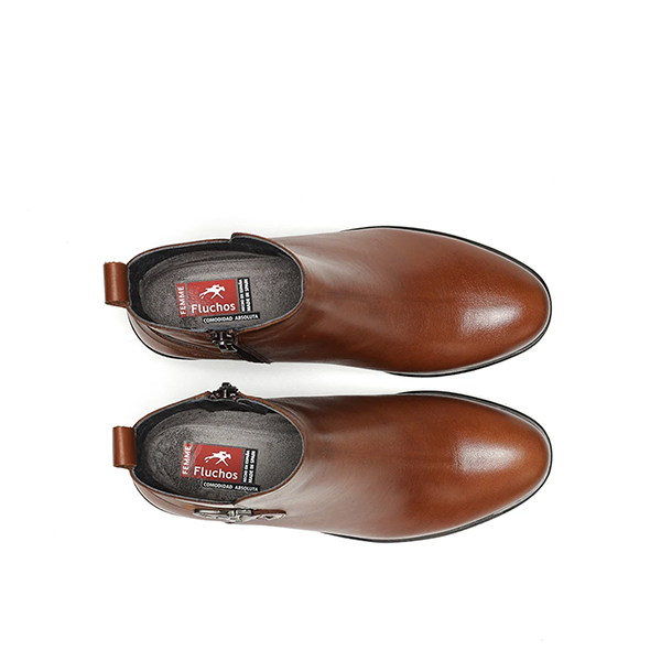 El botín F1798 Sugar Nob de Fluchos en color cuero/cuero es de esos zapatos que se convierten en fondo de armario. Su diseño combina líneas elegantes con un aire muy actual, perfecto para llevar con vestidos, faldas o unos vaqueros ajustados. El acabado en piel de primera calidad aporta estilo y resistencia, mientras que el tacón medio estiliza la figura sin renunciar a la comodidad.