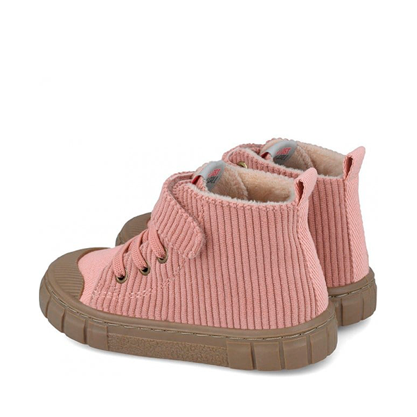 Confeccionado en tejido de pana suave, aporta calidez y un aspecto tierno, perfecto para los días más frescos. Su suela plana y flexible de 2 cm permite una pisada natural, mientras que la plantilla acolchada (no extraíble) ofrece confort extra en cada paso. El forro textil transpirable mantiene el pie cómodo y ventilado durante todo el día.