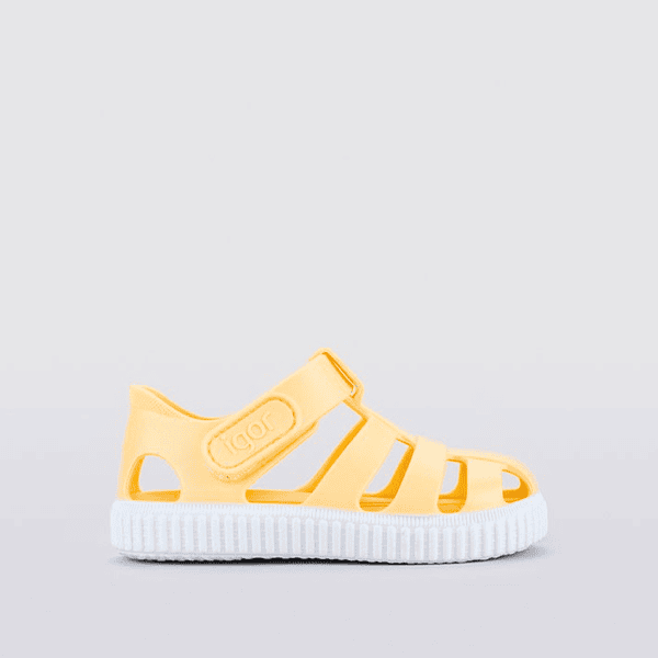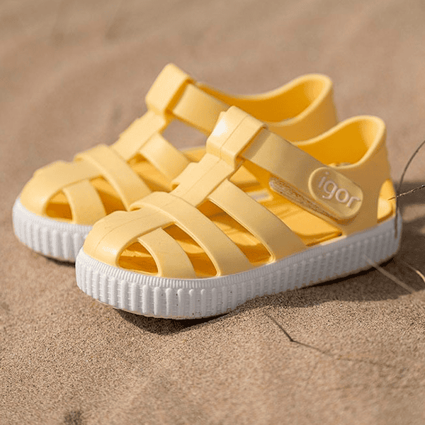 Envío gratis desde 30€Dulces, cómodas y listas para la acción. Estas cangrejeras de Igor en tono vainilla son ideales para que los peques disfruten del verano sin parar. Con su cierre de velcro se ponen en un abrir y cerrar de ojos, y su suela flexible estilo barefoot les permite moverse con total libertad. Están hechas con PVC reciclado, porque cuidar sus pasos también es cuidar el planeta. Perfectas para correr por la orilla, saltar en los charcos y vivir cada día como una aventura