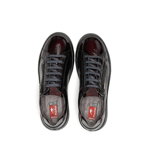 Este Fluchos Deportivo Charol Burdeos F1666 incorpora un sistema doble de cierre que lo hace especialmente funcional: cordones para ajustar el empeine a tu gusto y una cremallera lateral que facilita calzarlo en un instante. Su interior está acolchado para ofrecer una sensación agradable desde el primer momento, mientras que su plantilla suave ayuda a amortiguar la pisada incluso en jornadas largas.