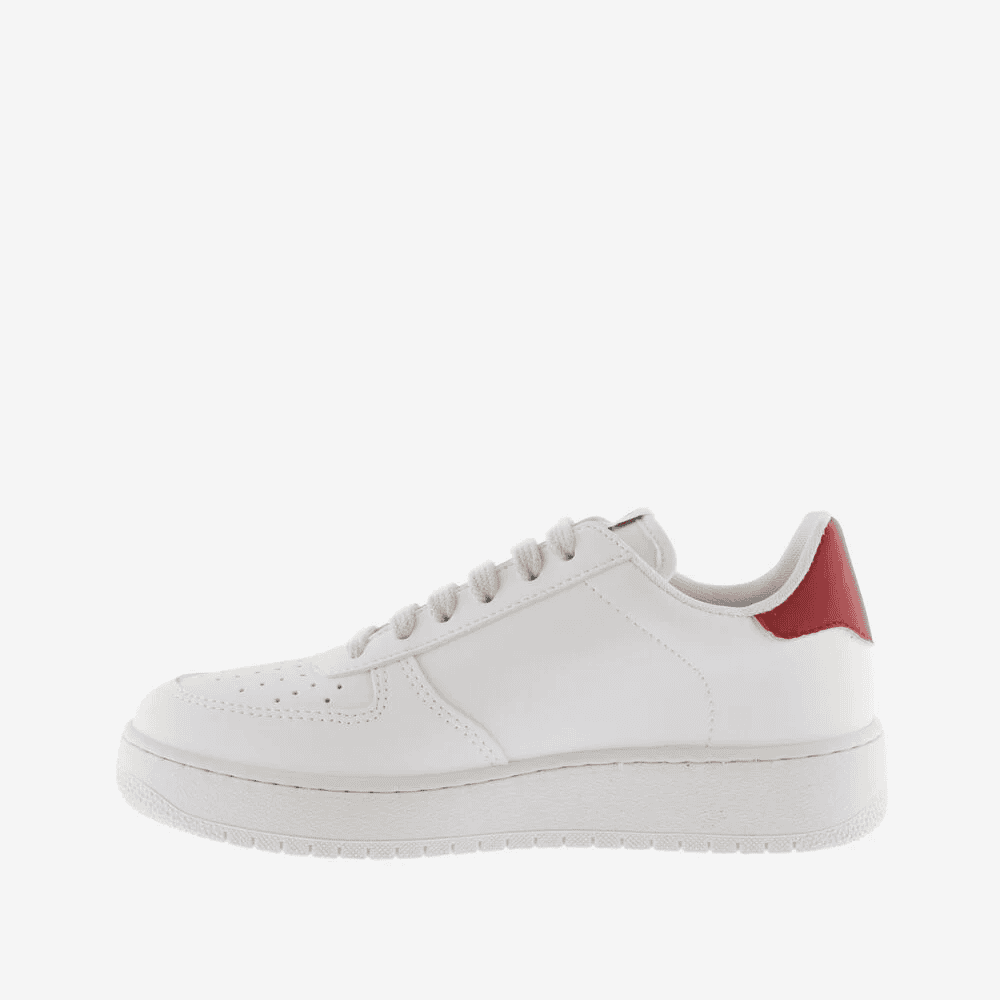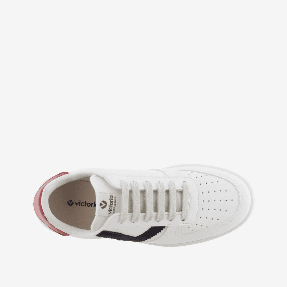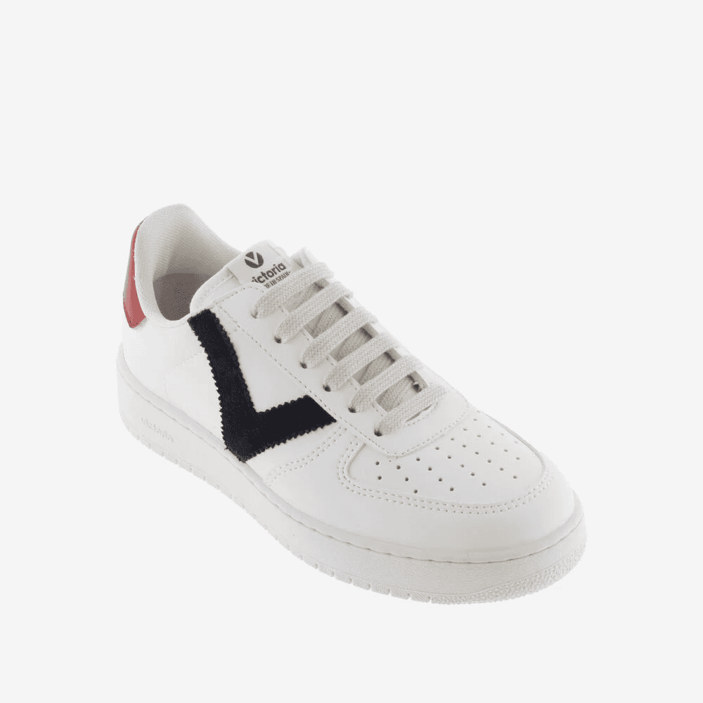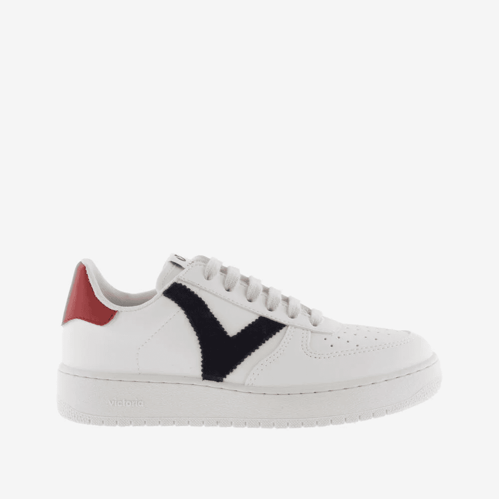 Envío gratis desde 30€Zapatillas blancas unisex “Madrid” de Calzados Victoria. Fabricadas en España con material efecto piel y logo de serraje. Disfruta del diseño clásico con V de Victoria en el