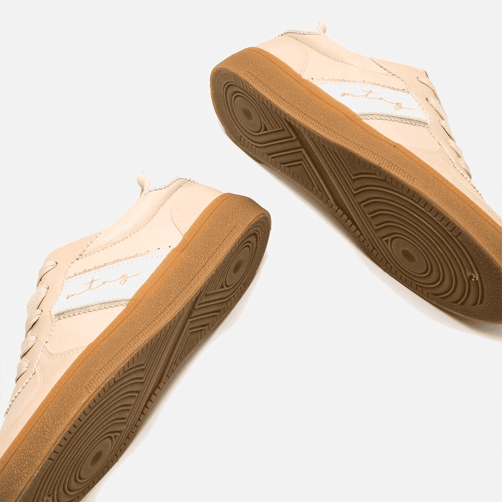 Zapatillas Mustang Roy 60860 para mujer en color Arena/Champagne. Estilo retro, suela caramelo y comodidad para combinar con cualquier look.