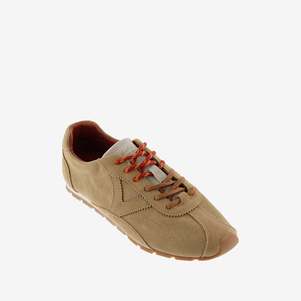 Zapatos de hombre deportivos en color beige con detalles en marrón y cordones naranjas, ideales para outfit casual y urbano.Victoria zapatilla Color Camel