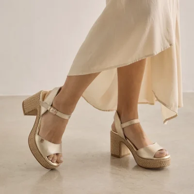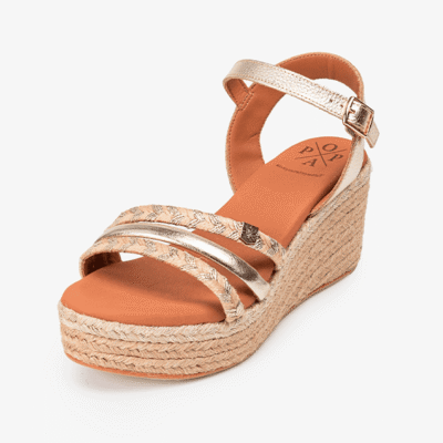 Sandalias cuña mujer Popa oro esparto