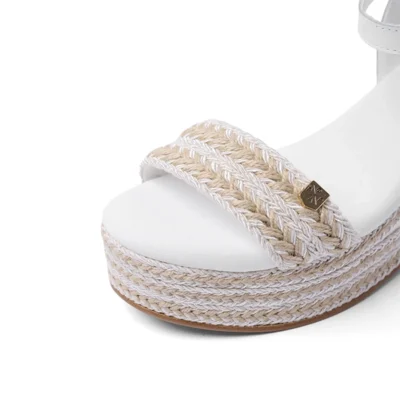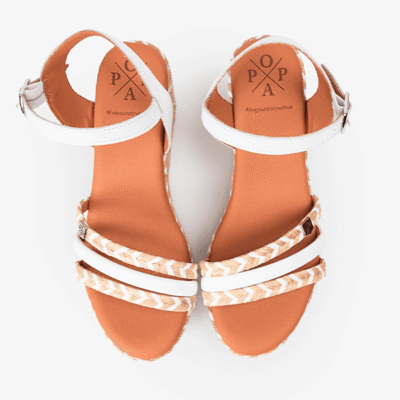 Sandalias mujer Popa blancas cuña esparto