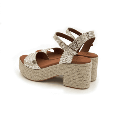 Popa Sandalia Cuña Esparto Piel Laminada Oro