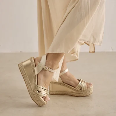 Sandalias Cuña Esparto Mujer Doradas – Popa Arale