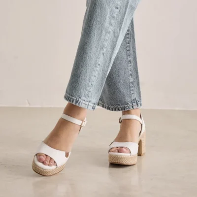 Sandalias Popa blancas cuña alta esparto