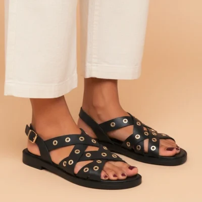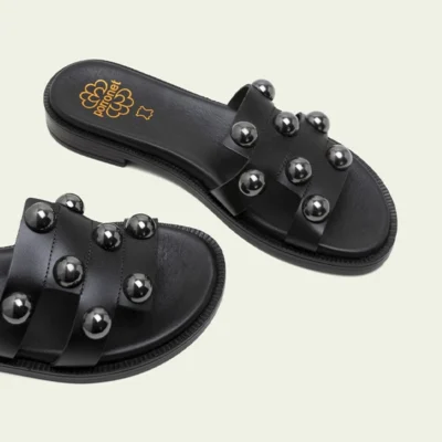 Sandalia Plana Porronet Esclava en Piel Laminada