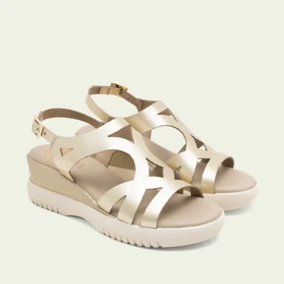 Sandalia De Cuña De Piel Taupe Oro Clotilde.
