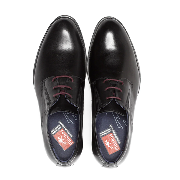 Zapato de vestir para caballero de la marca Fluchos. Fabricado en piel de alta calidad, con cordones y plantilla extraíble. Suela de goma patentada con tecnología de bajo impacto, que reduce la presión sobre el pie y mejora la pisada.