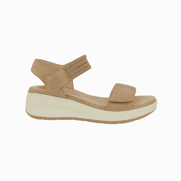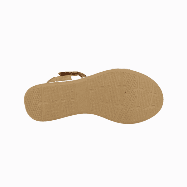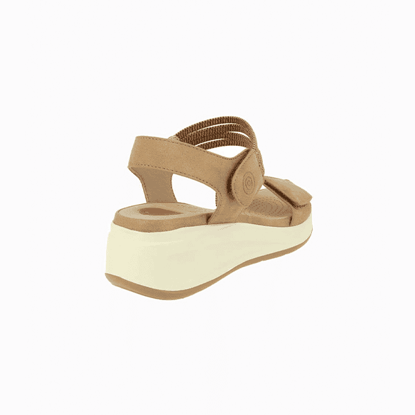 El tono camel neutro la convierte en una sandalia versátil, fácil de combinar con todo tipo de prendas. Una opción ideal para pies delicados, con horma confortable y ancho especial.