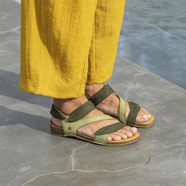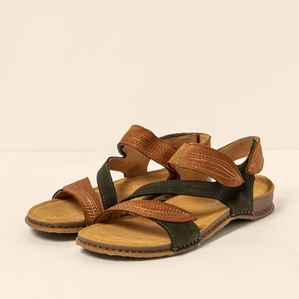 Hay calzado que simplemente se lleva… y otro que conecta contigo. Las sandalias mujer cómodas sostenibles El Naturalista en kaki y cuero están diseñadas para ofrecer una experiencia diferente: más natural, más cómoda y más consciente.