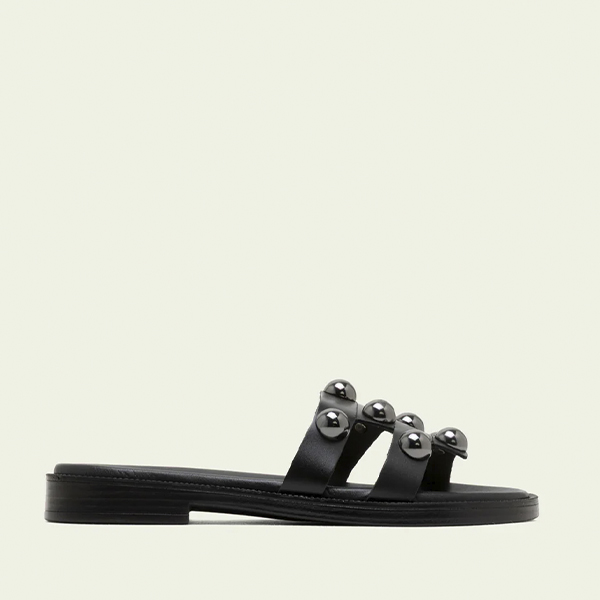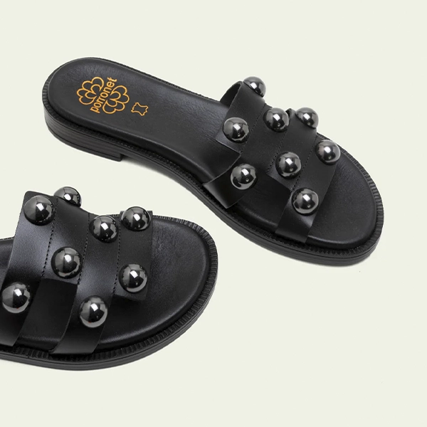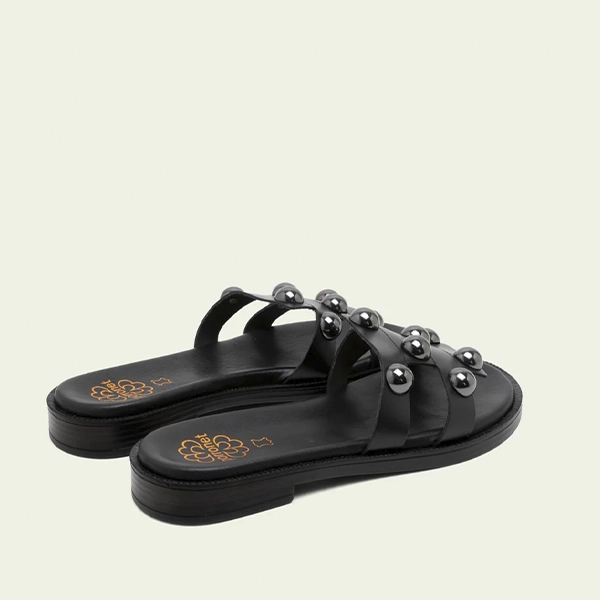 Las tachuelas metálicas plateadas son el detalle que lo cambia todo. Aportan un carácter y una distinción que transforma una sandalia sencilla en una pieza con personalidad propia. Además, ese brillo plateado contrasta de forma muy elegante con el negro del cuero, creando un efecto visual sofisticado y muy actual. Por tanto, son unas sandalias que destacan precisamente por la precisión de sus detalles.