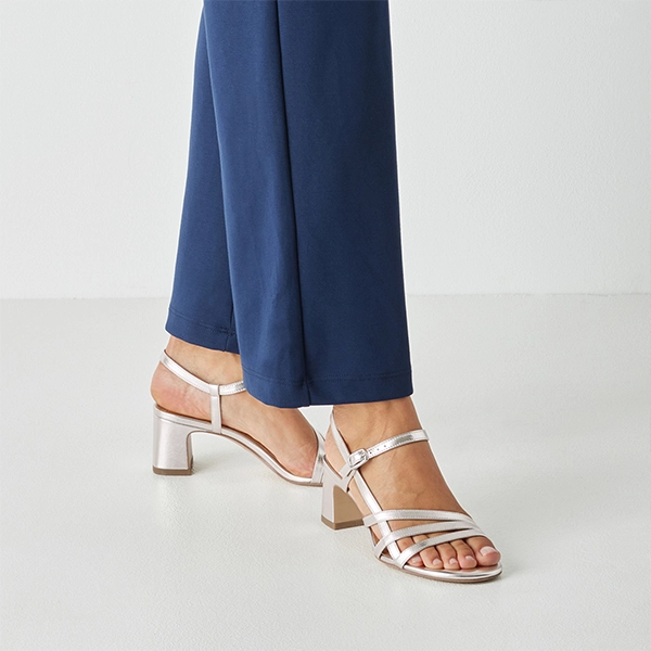 El acabado en platinum es uno de sus grandes atractivos. Aporta brillo de forma elegante y sutil, captando la luz sin resultar excesivo. Estas sandalias fiesta mujer platinum elegantes combinan con una gran variedad de colores, desde tonos oscuros hasta looks más claros o pastel.