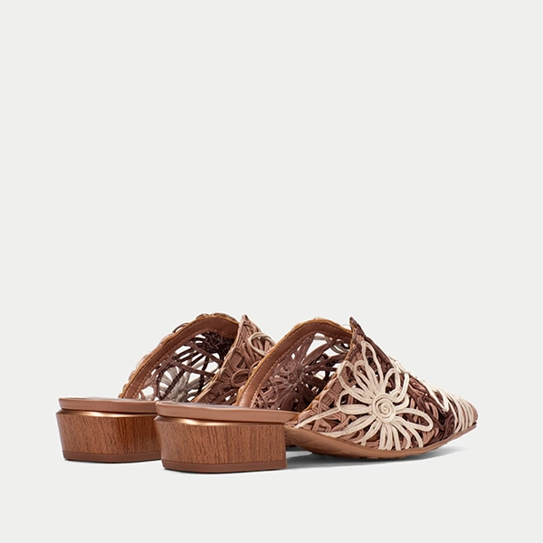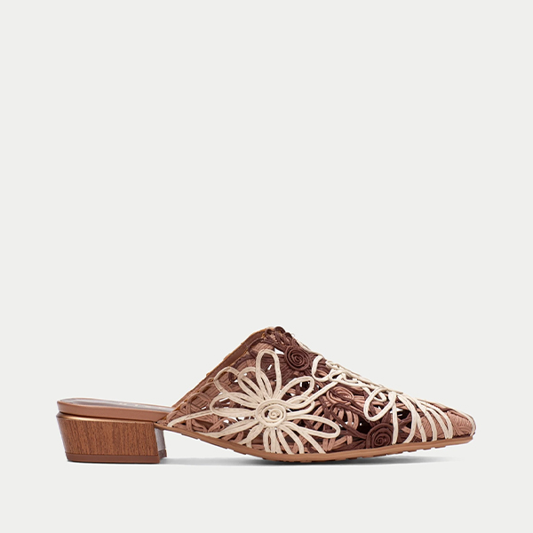 Zapato destalonado mujer marrón bordado floral crema tacón bajo Hispanitas AzucenaHispanitas Zapato Destalonado Marrón Bordado Floral
