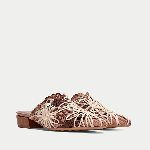 El bordado floral en tonos crema es el elemento más icónico del modelo. Cada flor está trabajada con precisión y delicadeza, creando un patrón calado que aporta ligereza visual y una feminidad natural muy difícil de igualar. Además, ese contraste entre el marrón cálido del fondo y el crema del bordado resulta sofisticado y muy actual. Por tanto, es un zapato que llama la atención por las razones correctas.