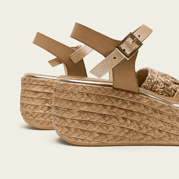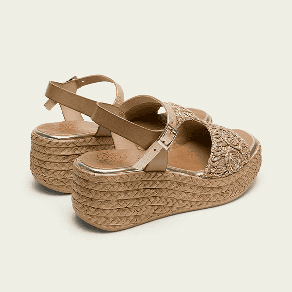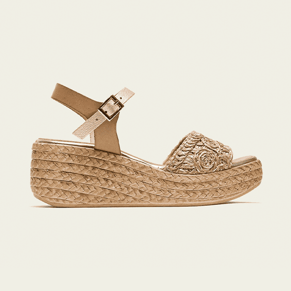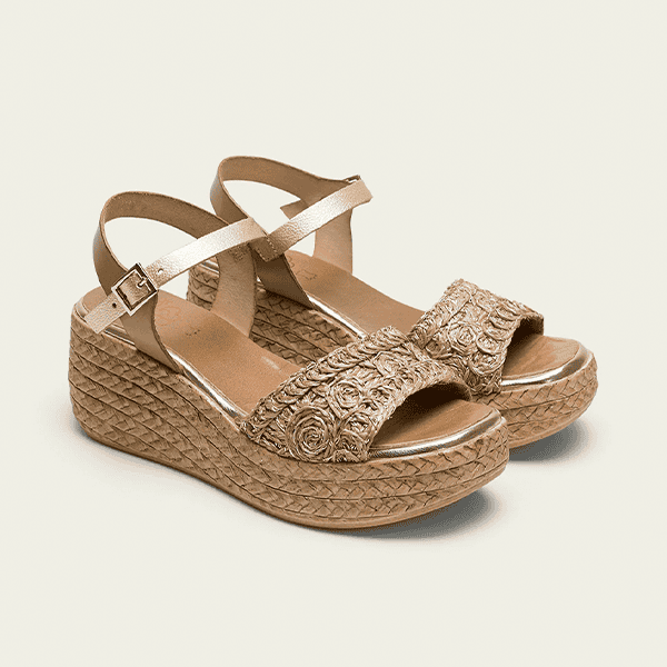 Envío gratis desde 30€Estilo y artesanía en cada paso. Esta sandalia de Porronet en tonos taupe y oro destaca por su diseño elegante y versátil. Con cuña de 7 cm y plantilla acolchada de piel para una pisada cómoda todo el día. El exterior presenta un atractivo efecto trenzado, tanto en la suela como en la pala delantera, que aporta un aire artesanal y distintivo. Cierre con hebilla al tobillo para un ajuste seguro y estilizado. Ideal para lucir con naturalidad y mucho encanto.