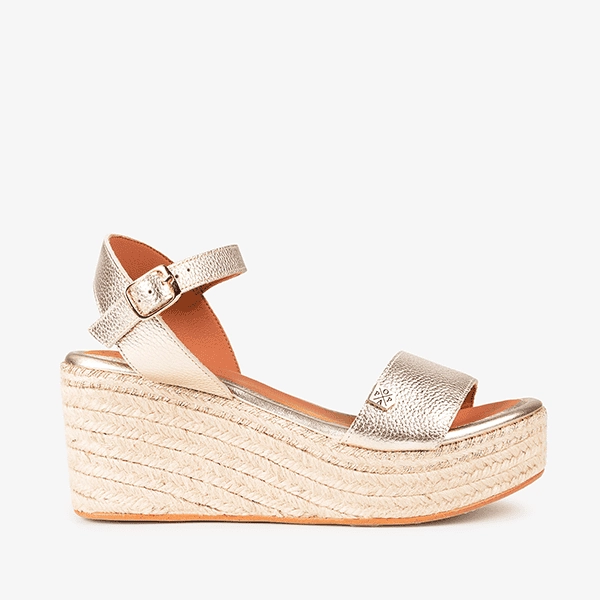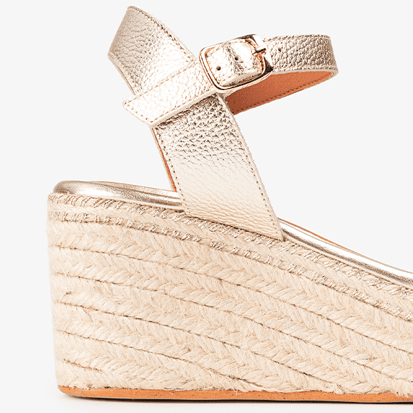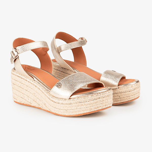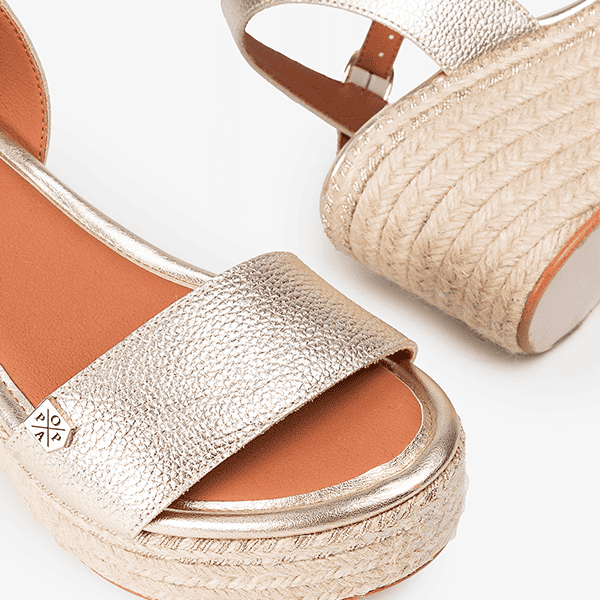 El verano pide altura, ligereza y un toque de brillo. Las sandalias de cuña esparto Popa en piel laminada oro tienen exactamente eso. Son una propuesta que combina la tradición artesanal del esparto con un acabado dorado sofisticado y muy actual. Por tanto, el resultado es una sandalia que lo tiene todo.
