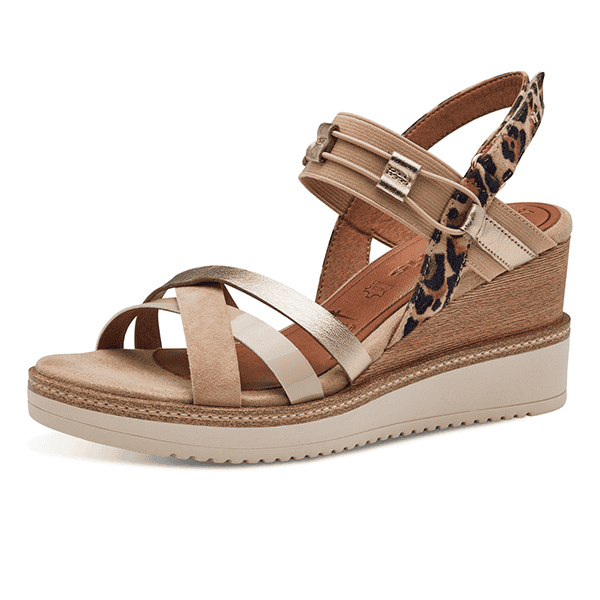 Sandalias cuña alta mujer Tamaris 28357-44 estampado leopardo beigeSandalia Cuña Alta Estampado Leopardo Tamaris