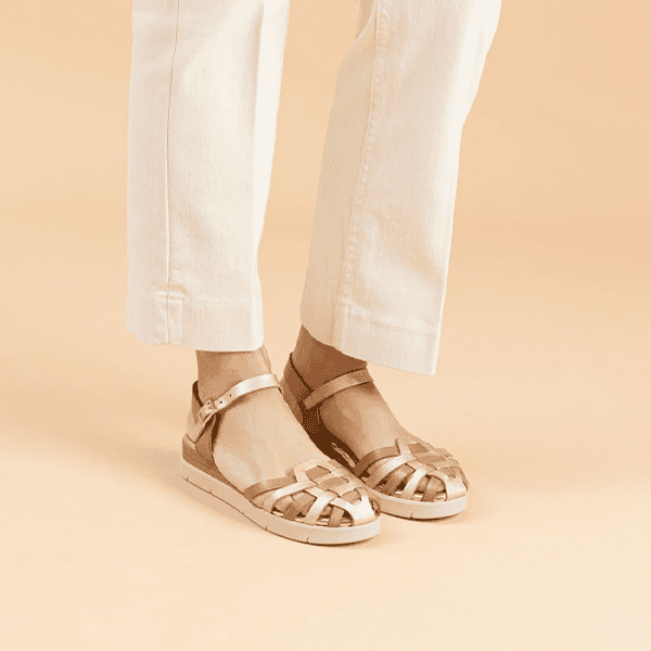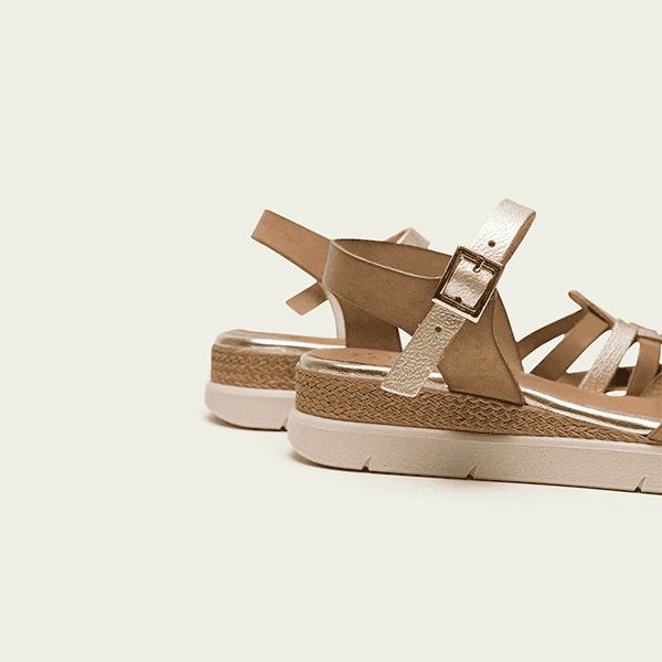 Las sandalias cuña de piel taupe oro para mujer destacan por su diseño cuidado, su comodidad y su excelente calidad de fabricación. Este modelo tipo cangrejera es ideal para quienes buscan un calzado seguro, elegante y cómodo para la temporada primavera-verano.