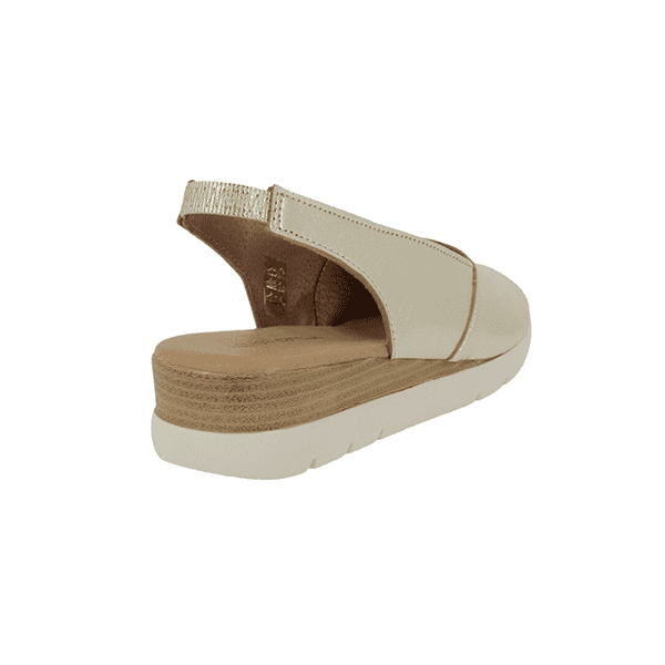 La suela de cuña ligera ayuda a repartir mejor el peso del cuerpo, ofreciendo estabilidad y reduciendo la sensación de cansancio al caminar. Gracias al cierre con elásticos traseros, la sandalia se ajusta de forma cómoda y segura, facilitando el calce y adaptándose a distintas formas de pie sin oprimir.
