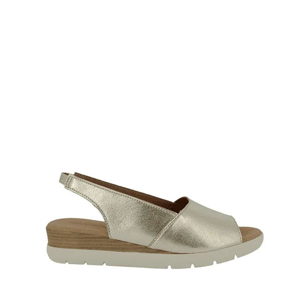 Sandalia cuña platino de mujer Doctor Cutillas en piel metalizadaDoctor Cutillas Sandalia Cuña Platino Puntera Abierta Confort