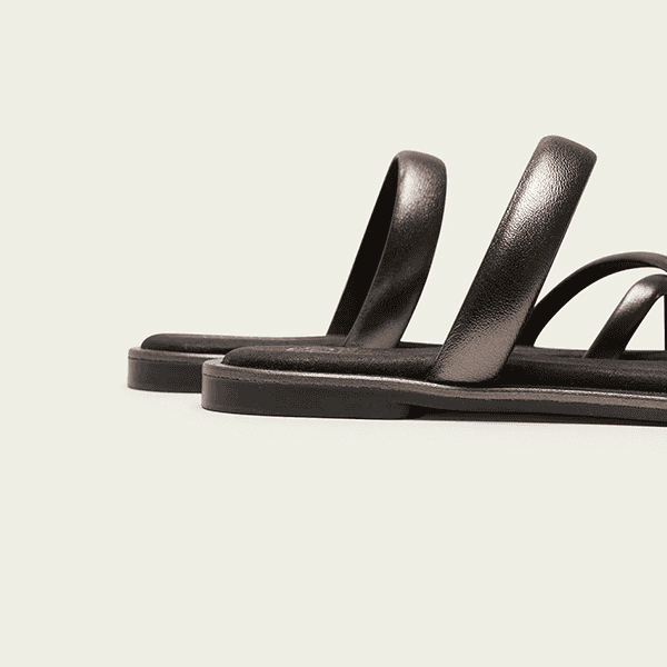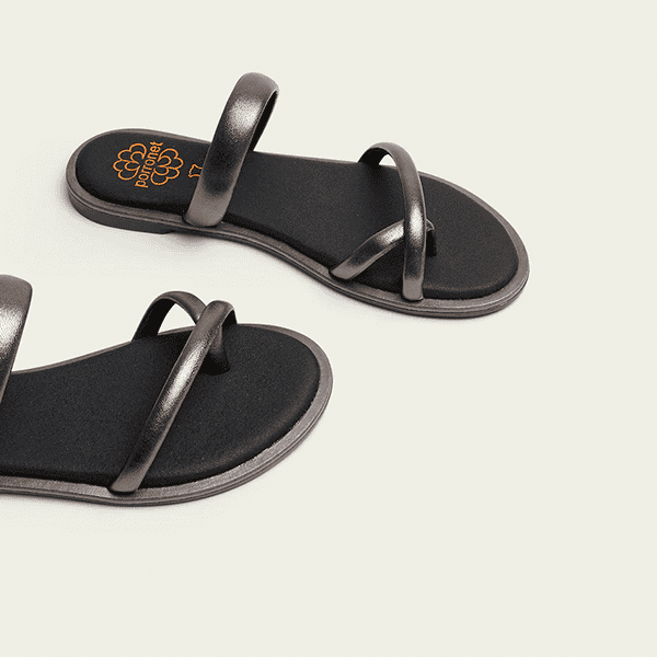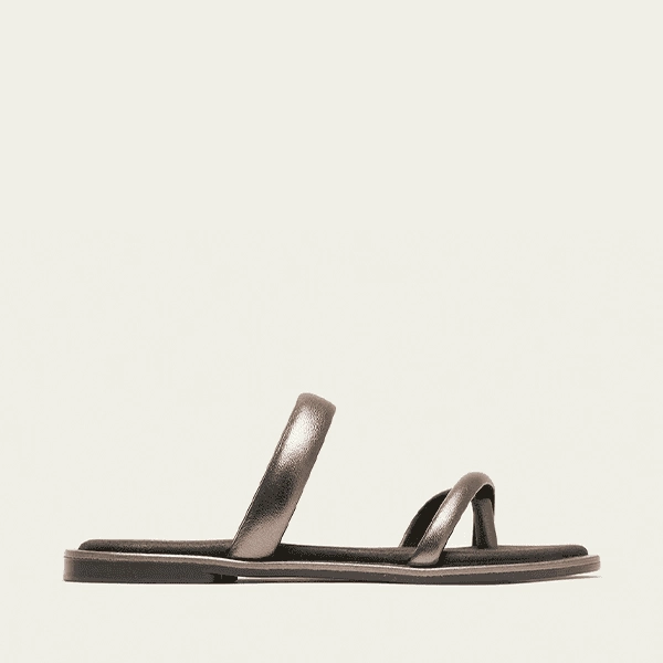 Cuando el estilo no necesita complicarse, aparecen las sandalias planas de mujer Porronet en tono plomo. Un diseño de inspiración esclava que lleva décadas siendo sinónimo de feminidad mediterránea y que esta temporada vuelve renovado con un acabado metalizado en piel laminada que lo moderniza todo.