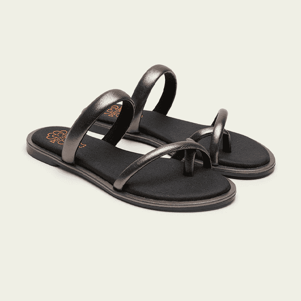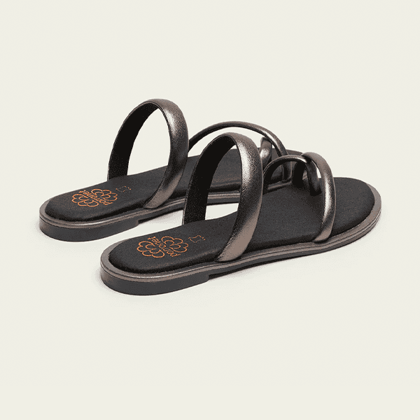 El tono plomo metalizado es además un acierto de estilismo: combina con blancos, crudos, azul marino, negro y prácticamente cualquier color de temporada. Una sandalia así se convierte en fondo de armario instantáneo.
