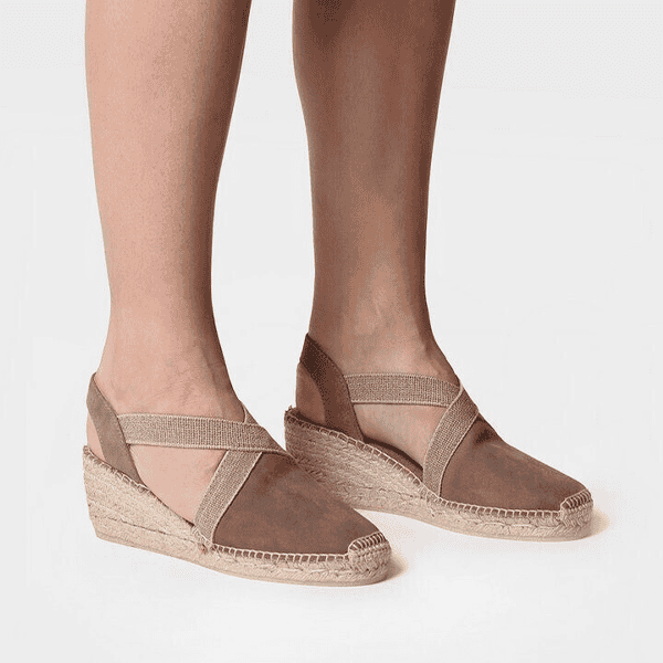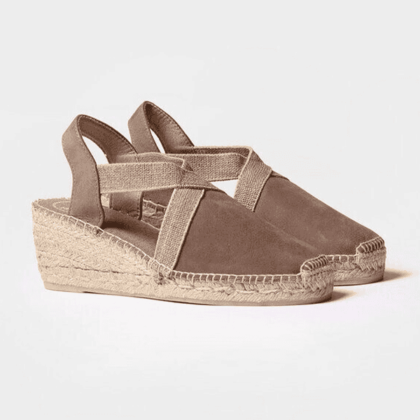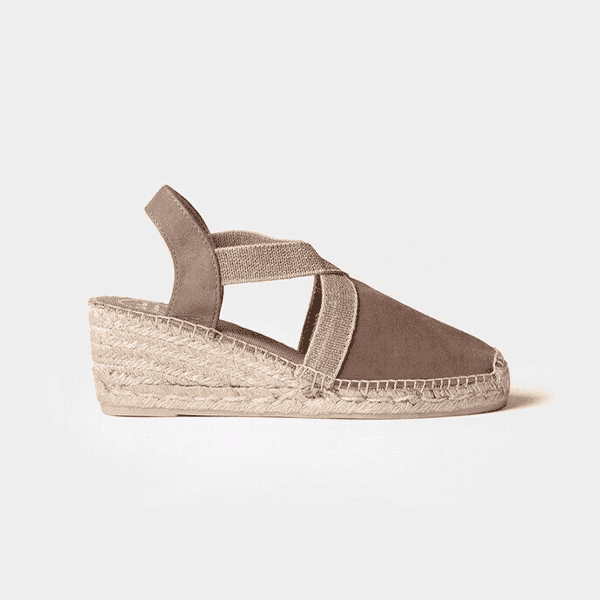 Envío gratis desde 30€Naturalidad y confort en cada paso. Esta sandalia destalonada de Toni Pons, en suave piel de nobuk color taupe –un tono tierra versátil y elegante–, es sinónimo de estilo y comodidad. Su puntera cerrada y el cruce elástico en el empeine garantizan un ajuste flexible y seguro. La cuña de esparto de 6 cm aporta altura con ligereza, mientras que la plantilla acolchada de fresco tejido ofrece una pisada suave y transpirable. Perfecta para el día a día con un toque de sofisticación natural.