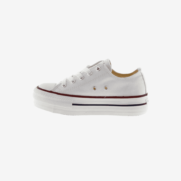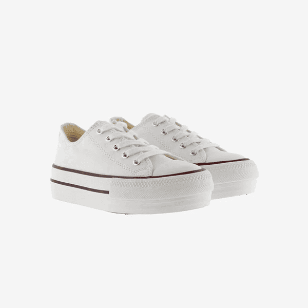 Zapatillas blancas tipo Converse con plataforma. Ligeras, cómodas y versátiles, ideales para un look casual diario.