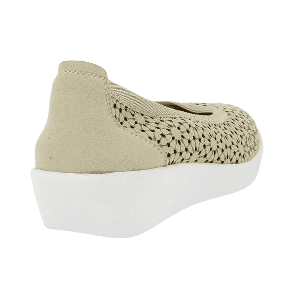 La cuña de 4 cm ofrece una altura cómoda que estiliza la pisada y ayuda a repartir mejor el peso del cuerpo, reduciendo la sensación de cansancio al caminar. Gracias a su diseño funcional, este zapato se calza con facilidad, convirtiéndose en una opción práctica para el uso diario sin complicaciones.
