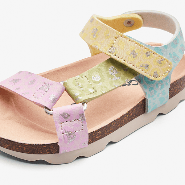 Las sandalias bio niña velcro Conguitos en tonos multicolor están diseñadas para ofrecer una opción cómoda y funcional para los meses de verano. Este modelo combina diseño divertido y practicidad, adaptándose al ritmo activo de las más pequeñas.