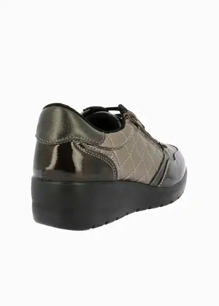 Zapato deportivo de cuero negro y beige con diseño acolchado y suela cómoda, ideal para calzado casual y urbano. Perfecto para complementar tu vestuario diario con estilo y comodidad.Doctor Cutillas Zapatos Cómodos Color Bronce 45415