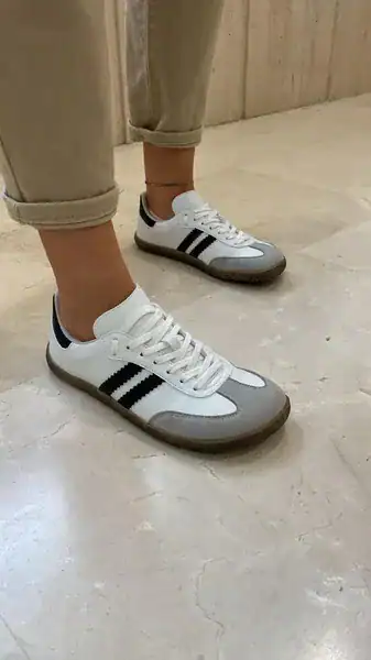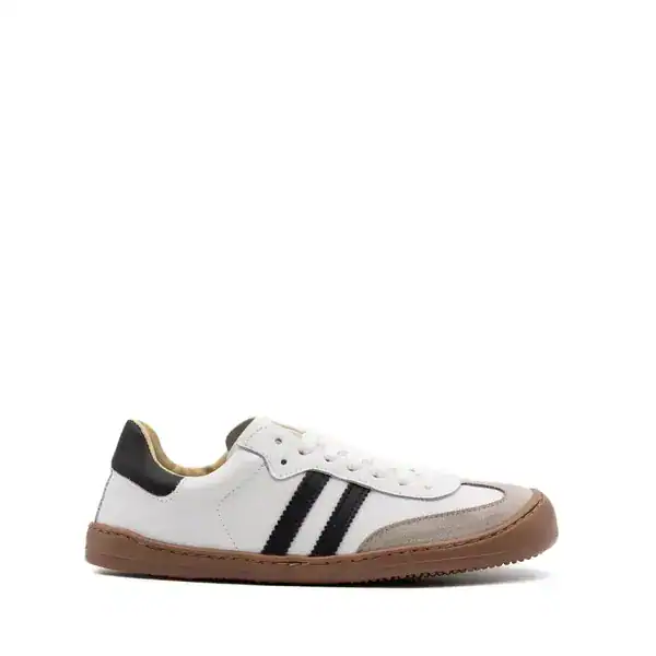 Las zapatillas respetuosas para mujer en color blanco con detalles en negro son la combinación perfecta de confort y diseño. Pensadas para el bienestar del pie, su estructura flexible permite un movimiento natural, adaptándose a cada pisada.