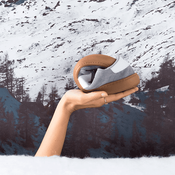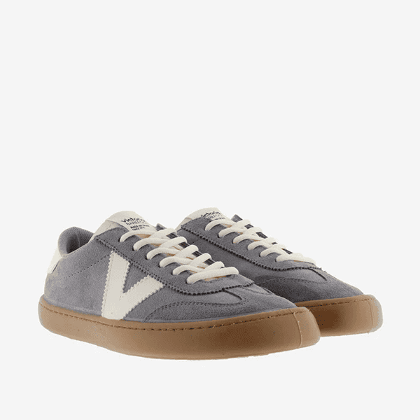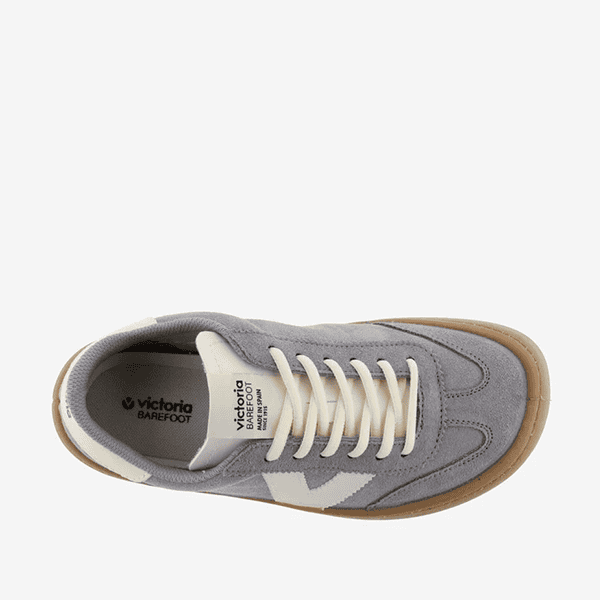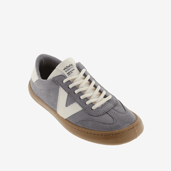 Zapatillas de sport de cuero y ante en tonos grises y blancos, ideales para un estilo urbano y cómodo.Zapatilla Victoria Concepto Barefoot Color Gris