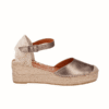 Envío gratis desde 30€Alpargata de esparto Viguera en un suave tono menta, fabricada con lino algodón de alta calidad que aporta frescura y suavidad al tacto. Sus cintas cruzadas envuelven el pie con estilo y sujeción. Cuña de 6 cm y plataforma de 3 cm para sumar altura sin renunciar a la ligereza. La primera alpargata flexible, con plantilla de gel acolchada que mima cada paso. Ligera, transpirable y con ese encanto natural que combina con todo.
