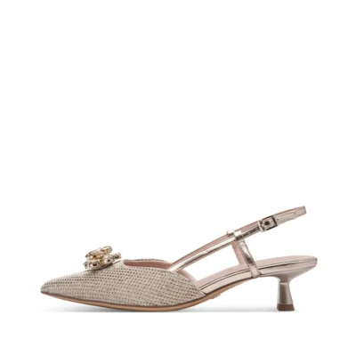 Su tacón de 5,5 cm aporta altura con estabilidad, ideal para lucir estilizada sin renunciar a la comodidad. Un zapato versátil, cómodo y con ese punto de brillo que eleva cualquier look, de día o de noche.