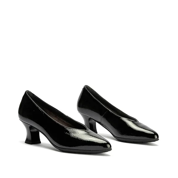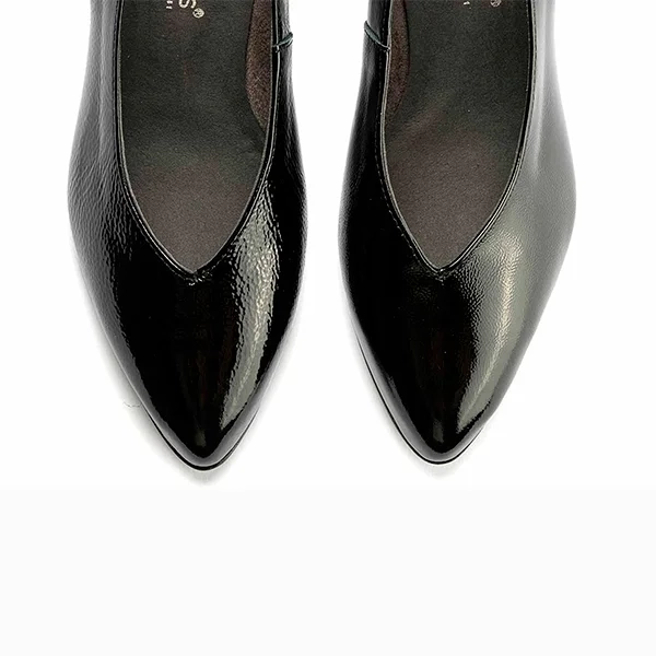 El tacón medio de 6 cm estiliza la figura y mejora la postura, pero mantiene una altura cómoda y estable. Gracias a la plantilla acolchada y al interior suave, el zapato resulta agradable incluso tras varias horas de uso. Esto lo convierte en una excelente opción para jornadas largas, eventos o reuniones.