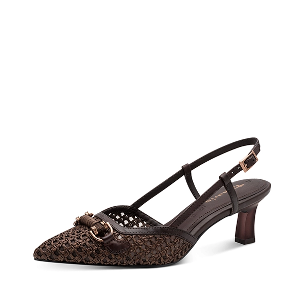 Estos zapatos tacón mujer elegantes presentan un diseño slingback abierto por detrás que aporta ligereza visual y un toque femenino muy actual. Este estilo permite mayor libertad de movimiento y facilita el calce, manteniendo al mismo tiempo una estética refinada.